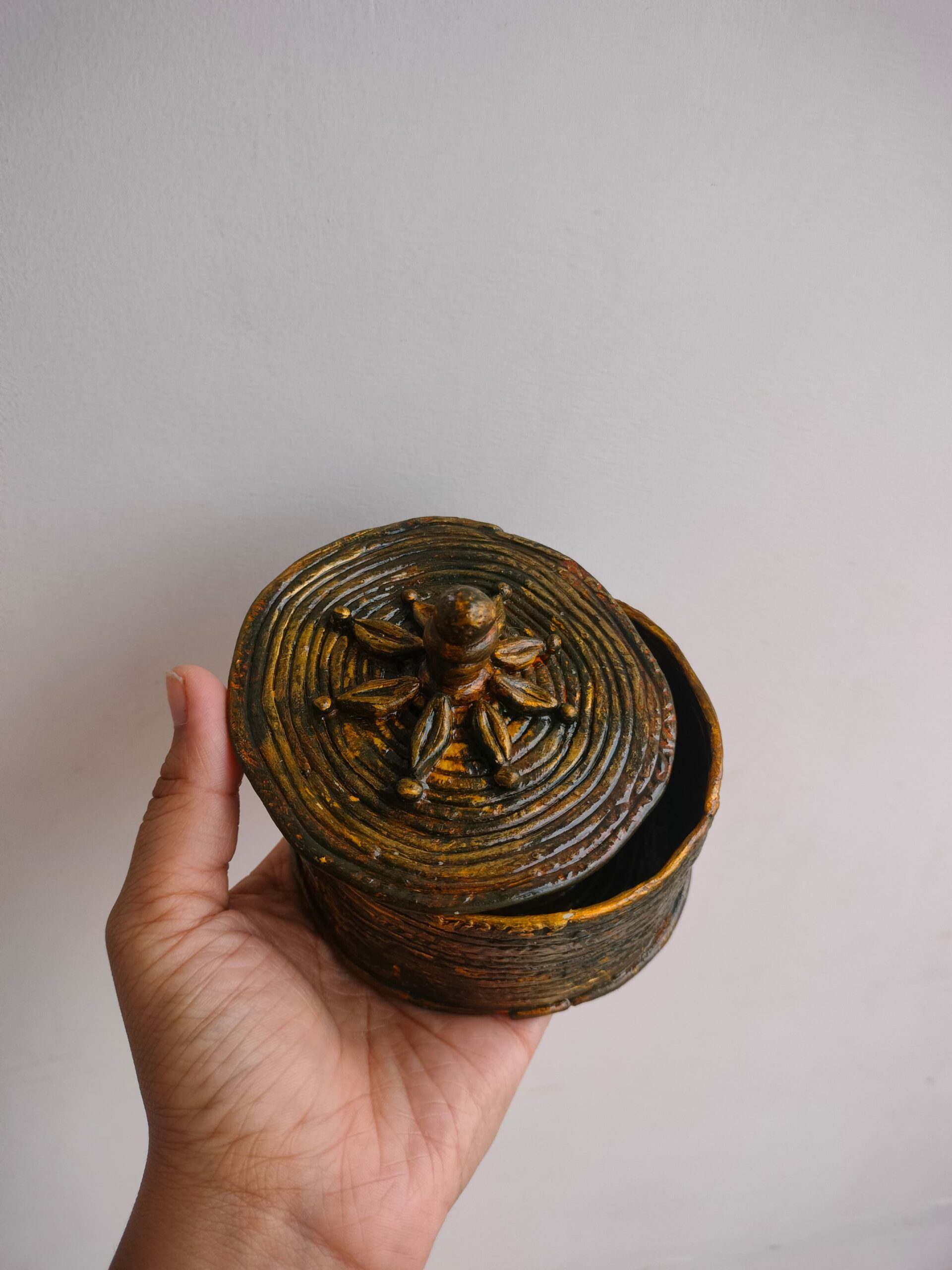 🌸 Handmade Design: Intricate spiral and floral details adorn the lid, adding a unique, artistic touch.